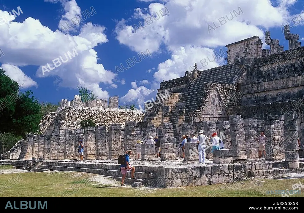 Temple of the Warriors with the Court of the Thousand Columns, Mayan ruins of Chichen Itza, Yucatan, Mexico, North America, Central America.