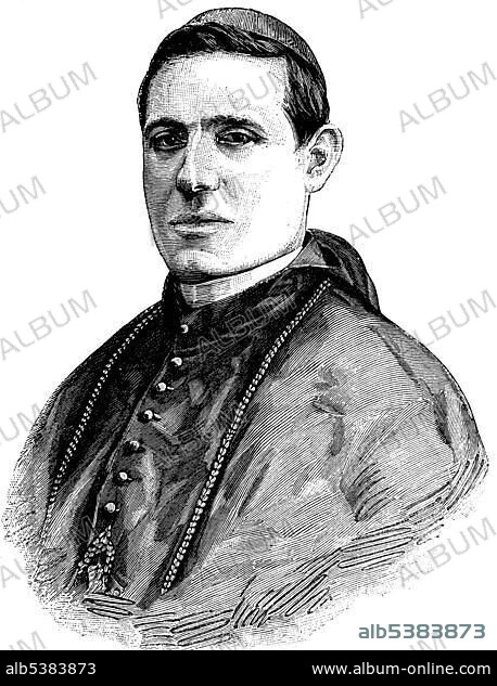 Mariano Cardinal Rampolla del Tindaro, 1843-1913, Cardinal Secretary of State during the pontificate of Leo XIII, one of the leaders of the Catholic Church in the second half of the 19th century, woodcut, historical engraving, 1880