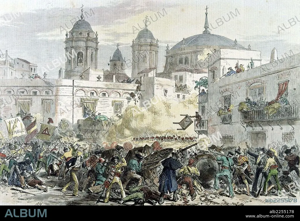 Descripción: PRIMERA REPUBLICA 1873-1874. ESPAÑA. " REVUELTA EN EL BARRIO DE LA VIÑA EN CADIZ ". GRABADO DE LA ILUSTRACION ESPAÑOLA Y AMERICANA