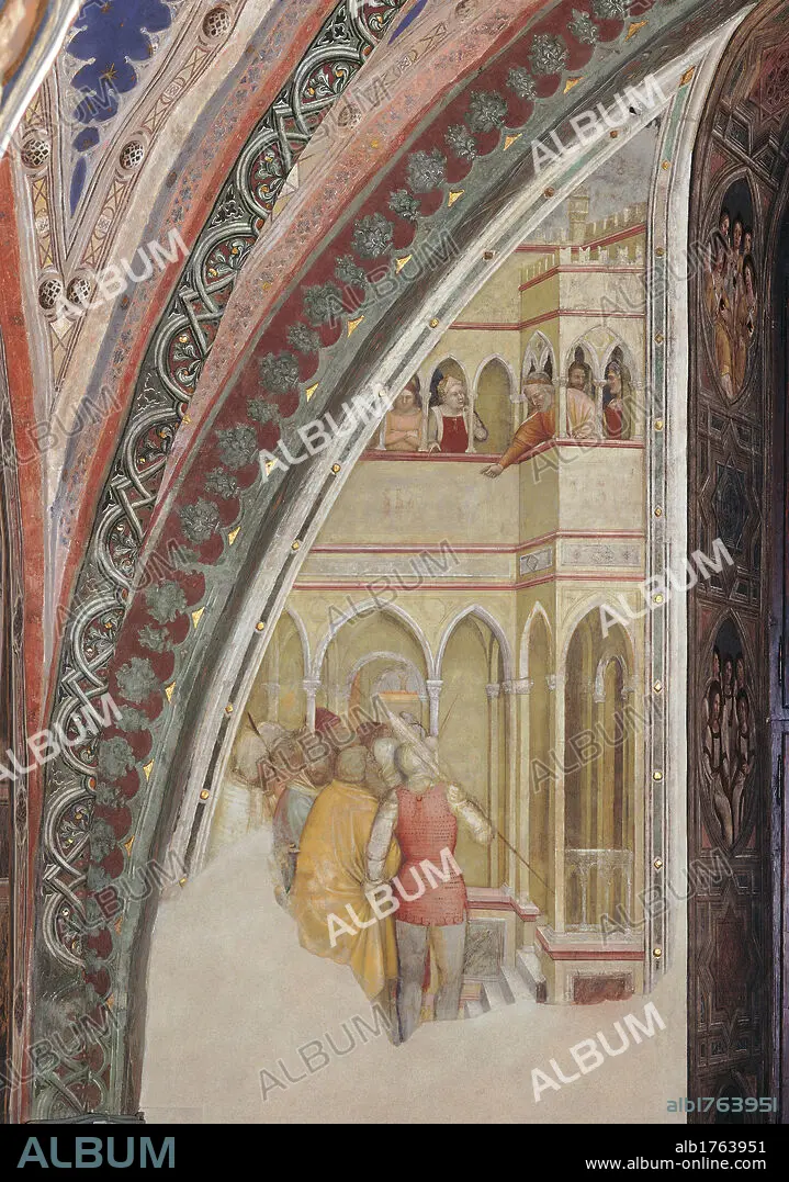 Italy, Veneto, Padua, SantAntonio di Padova Basilica, San Giacomo Chapel. Detail. Panel top left after restoration. Frescoes of the right wall of the San Giacomo Chapel Episode 5 Stories of St James The Companions of St James before the King of Spain.