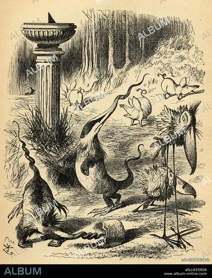 The Slithy Toves. Illustration by Sir John Tenniel, 1820-1914. From the book "Through the Looking-Glass and What Alice Found There" by Lewis Carroll. Published London 1912.