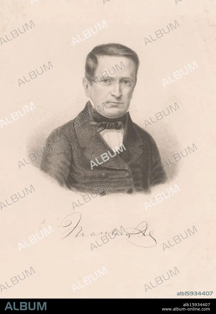 Portrait of Otto von Manteuffel, a facsimile signature at the bottom., print maker: Auguste Hüssener, 1799 - 1877, paper, etching, height 210 mm × width 170 mm, print