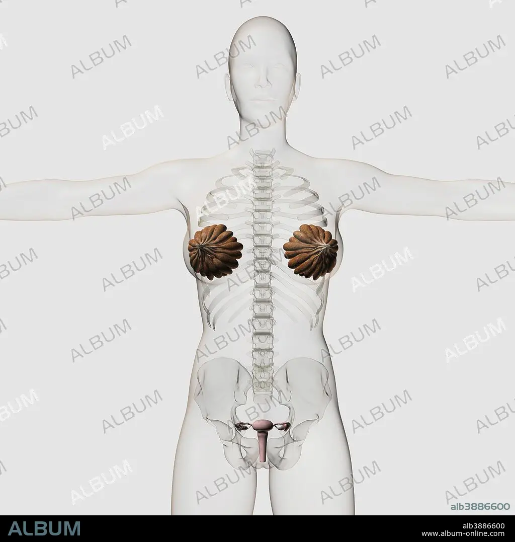 Three dimensional view of the female reproductive system.