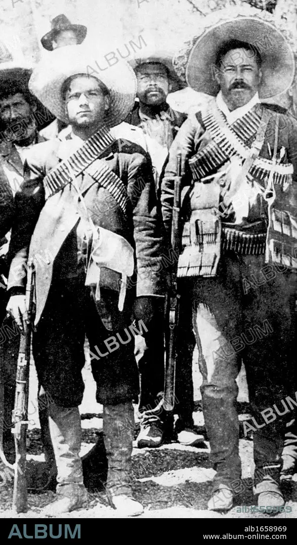Calixto Contreras (left) with Doroteo Arango Arambula (1878-1923) known as Pancho Villa, Mexican revolutionary general.
