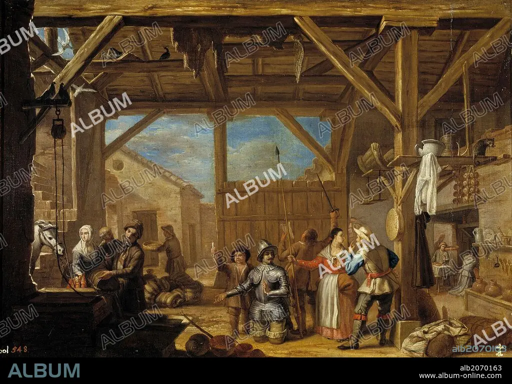 Descripción: Valero Iriarte / 'Don Quijote armado caballero', Hacia 1720, Escuela Española, Óleo sobre Lienzo, 54 cm x 78 cm, P01163