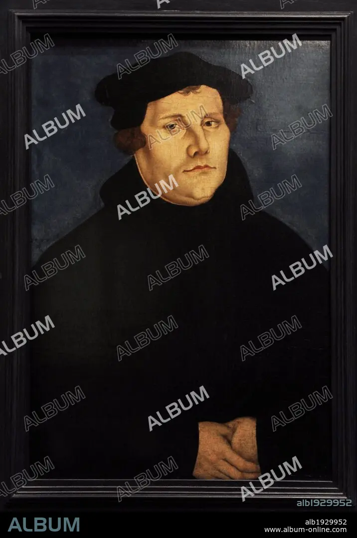 LUCAS CRANACH EL VIEJO (estudio). MARTIN LUTERO (1483-1546). Reformador religioso alemán. RETRATO DE LUTERO, obra de Lucas CRANACH (472-1553). Wittenberg, 1529. Museo Histórico Alemán (Deutsches Historisches Museum). Berlín. Alemania. Europa.
