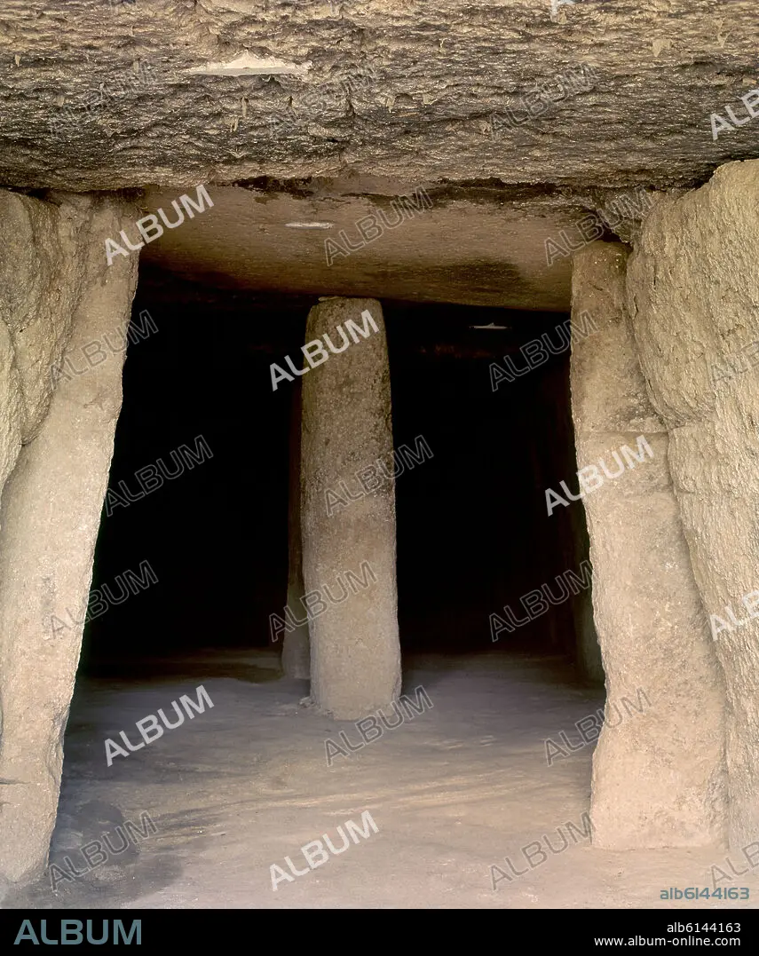 VISTA DEL INTERIOR DEL DOLMEN DE LA CUEVA DE LA MENGA - CAMARA FUNERARIA PRECEDIDA DE UN AMPLIO CORREDOR