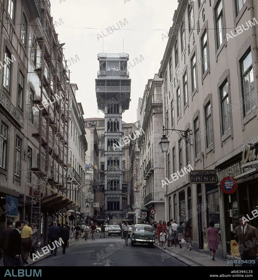 Descripción: ELEVADOR DE SANTA JUSTA CONSTRUIDO EN 1902 TAMBIEN LLAMADO ELEVADOR DO CARMO QUE UNE LOS BARRIOS DE LA BAIXA POMBALINA Y EL CHIADO - FOTO AÑOS 60