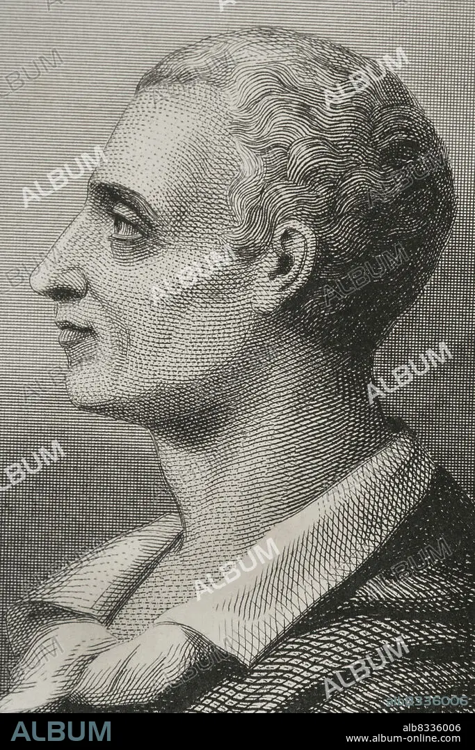 Montesquieu (1689-1755). Filósofo francés. Retrato. Grabado por Geoffroy. Detalle. "Historia Universal", por César Cantú. Tomo VIII. 1858.