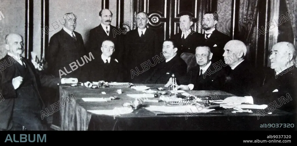 1931 The government of Juan Bautista Aznar-Cabañas, Prime Minister of Spain. Seated from left: Alvaro de Figueroa Torres, Juan Bautista Aznar-Cabanas, Damaso Berenguer y Fuste, Manuel Garcia Prieto, admiral Jose Rivera Alvarez de Canero, Gabino Bugallal Araujo. Standing left to right: Gabriel Maura Gamazo, Jose Maria de Hoyos y Vinent de la Torre O'Neill, Jose Gascon y Marin (first from right).