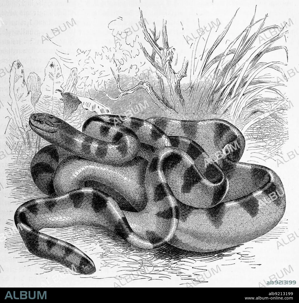 Reptiles, Striped snake, Hydrophis cyanocinctus belongs to the sea snakes within the family of elapid snakes (Elapidae), Historical, digitally restored reproduction from a 19th century original.