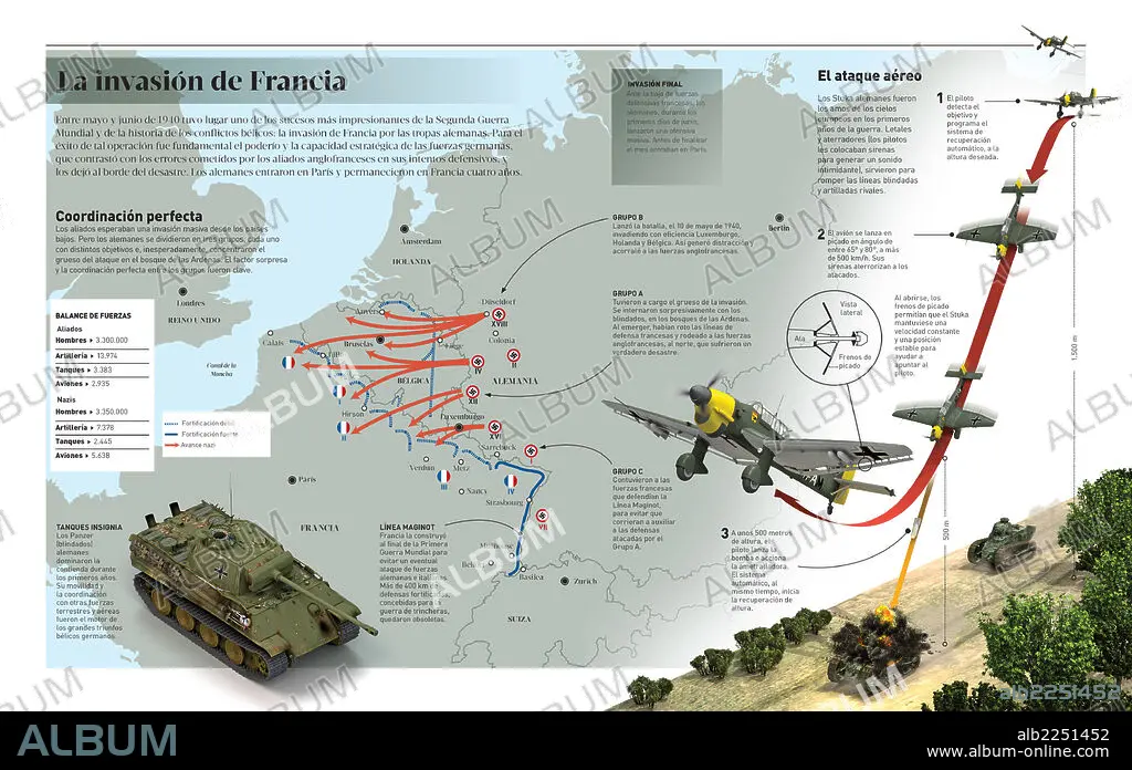 Descripción: Infografía sobre la invasión de Francia por las tropas alemanas, uno de los sucesos más impresionantes de la Segunda Guerra Mundial y de la historia de los conflictos bélicos.