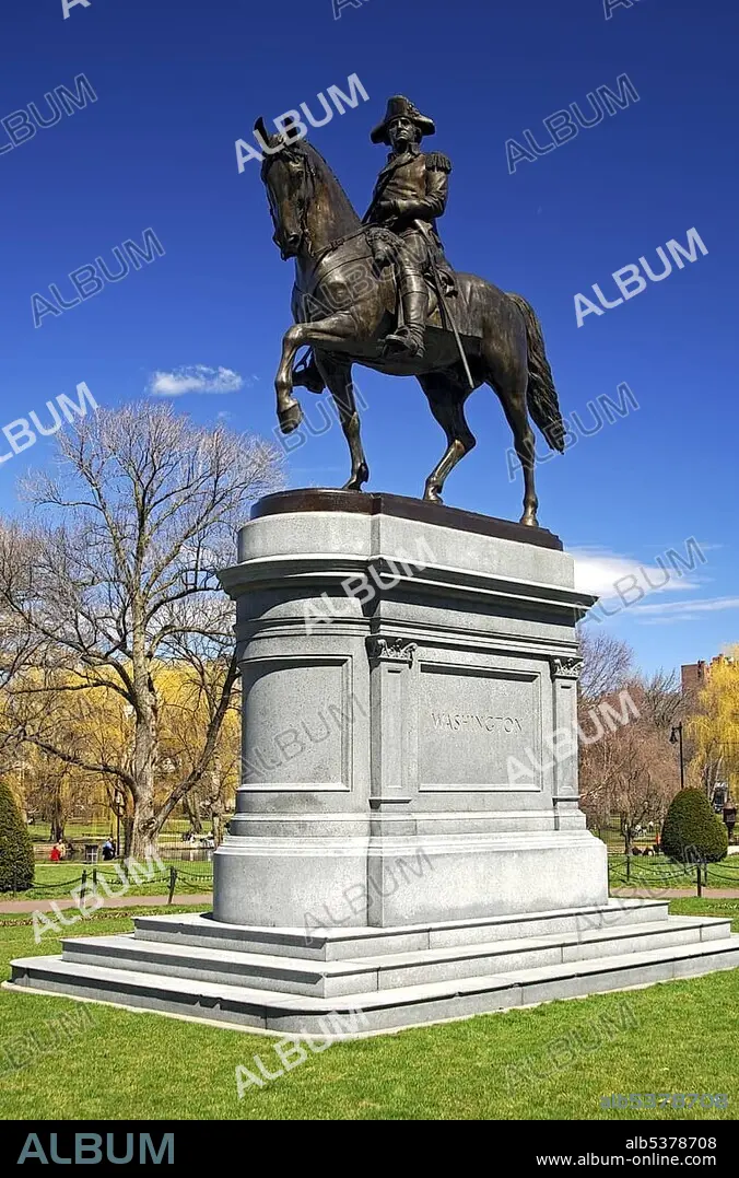 George Washington equestrian statue in the municipal park of Boston, Massachusetts, USA, North America.