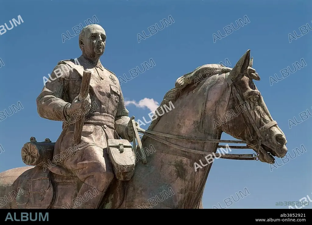 Equestrian statue of dictator Francisco Franco, removed from the central square of his hometown and re-erected in Ferrol, Autonomous Region of Galicia, province of A Coruña, Spain