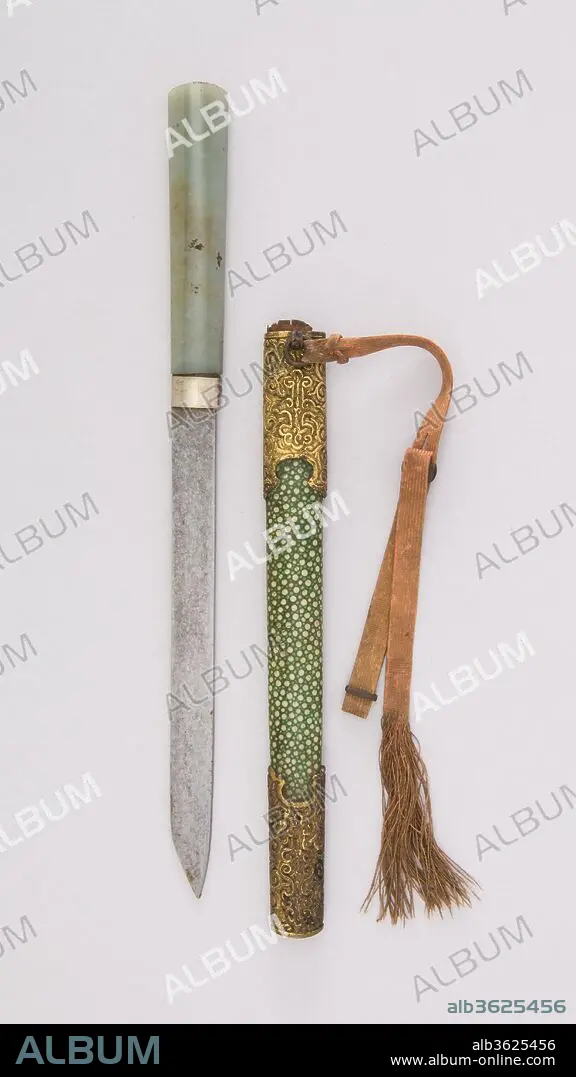 Steel, jade, shark skin, brass, gold