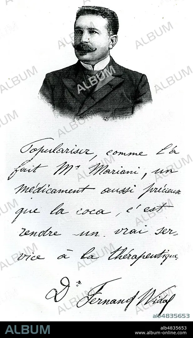 Portrait de Fernand WIDAL (1862-1929) utilise dans une publicite pour le vin tonique Mariani vers 1900. Credit : Collection KHARBINE-TAPABOR.