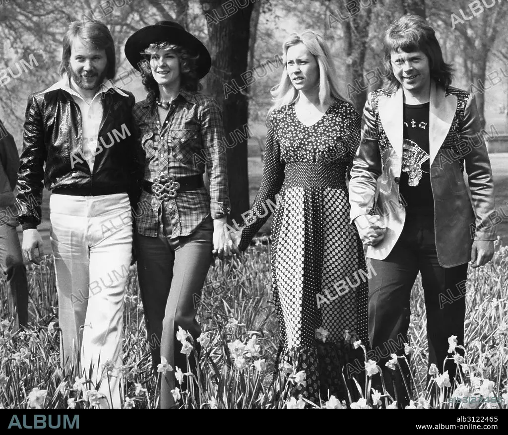 Apr. 9, 1974 - London, England, U.K. - One of the most dominating forces of popular music was a group from Sweden called 'ABBA', a musical entity consisting of two couples, who became by far the most successful act of that decade. PICTURED: In Hyde Park, London, after winning the European Song Contest; BENNY ANDERSSON, ANNI-FRID LYNGSTAD, AGNETHA FALTSKOG and BJORN ULVAEUS. (Credit Image: © Keystone Press Agency/Keystone USA via ZUMAPRESS.com)
