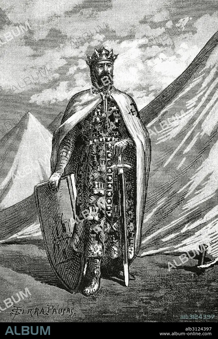 FERNANDO III El Santo (1201-1252). Rey de Castilla (1217-1252) y de León (1230-1252). Dirigió las campañas más importantes de toda la reconquista, en 1236 tomó Córdoba y un poco antes de su muerte logró conquistar Sevilla. En 1671 fue canonizado. Retrato. Grabado del siglo XIX.