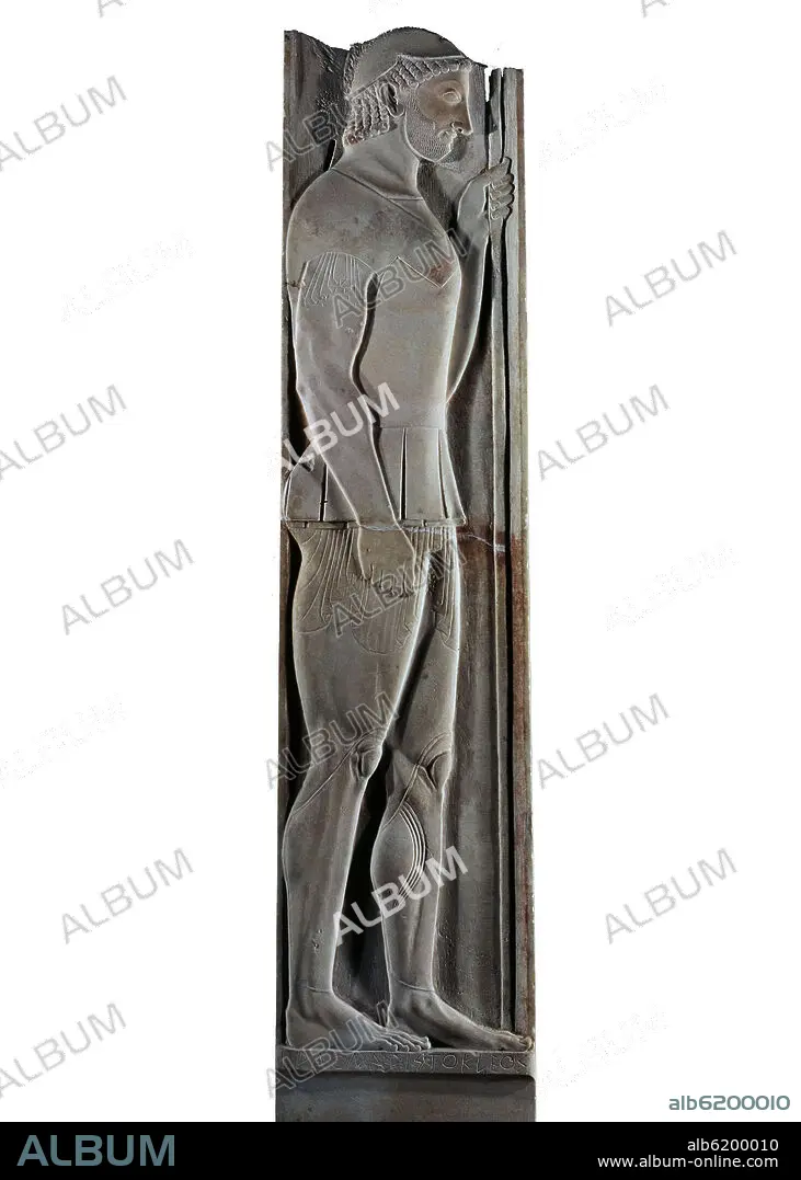 ARISTOKLES / ARISTOCLES (SIGLO VI A. C.-SIGLO VI A. C.). ESTELA FUNERARIA DE ARISTION - 510 AC - MARMOL - 202 x 14 cm