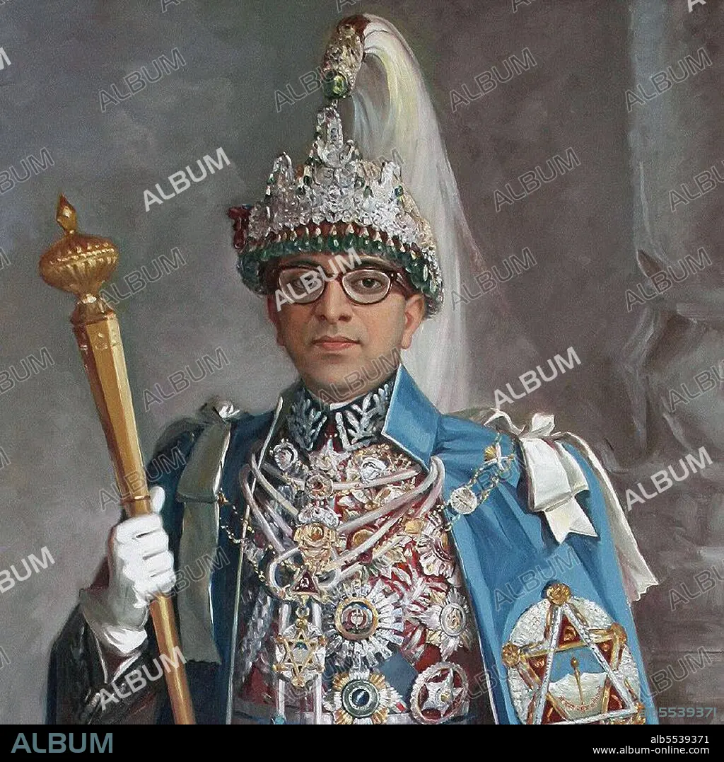 Título: Nepal: Official portrait of King Mahendra of Nepal (r. 1955-1972)