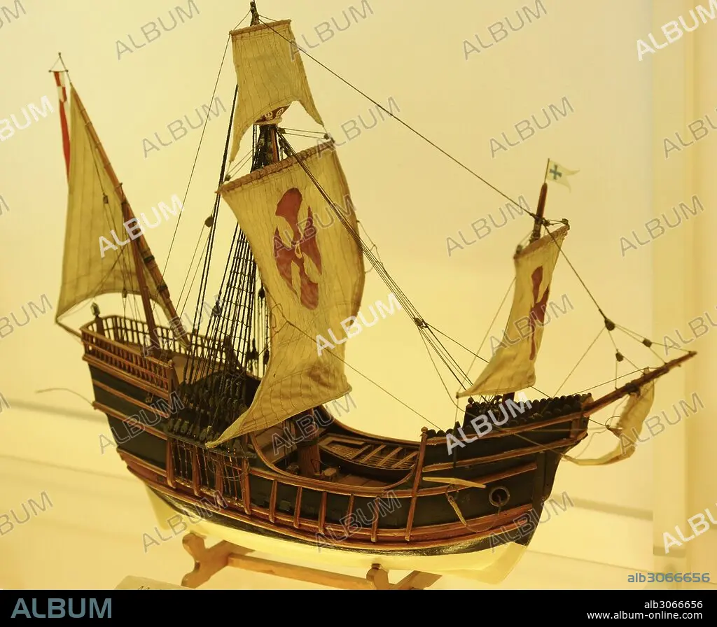 HISTORIA DE LA NAVEGACION. EDAD MODERNA. Siglos XV-XVI. EUROPA. Maqueta de una CARABELA, embarcación a vela usada en viajes oceánicos. Museo de Historia. Gdansk. Polonia.