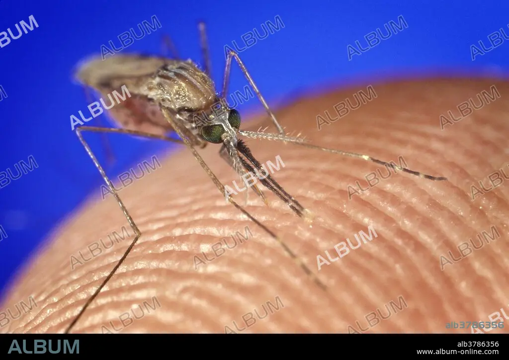 Anopheles gambiae. Female Anopheles gambiae mosquito feeding. Malaria vector, parasite. Anopheles gambiae is a complex of at least seven morphologically indistinguishable species of mosquitoes in the genus Anopheles. This complex was recognised in the 1960s and includes the most important vectors of malaria in sub-Saharan Africa particularly of the most dangerous malaria parasite, Plasmodium falciparum. It is one of the most efficient malaria vectors known.