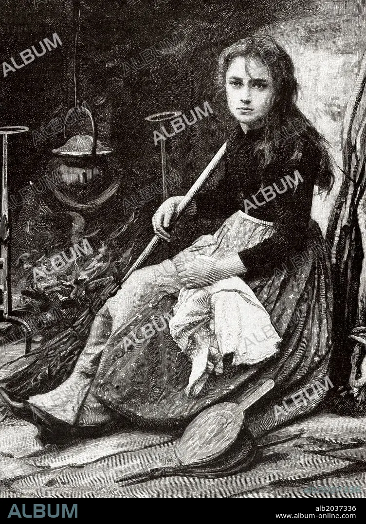 LA CENICIENTA, personaje de cuento de hadas del cual existen varias versiones. La más conocida en la escrita por Charles Perrault. Grabado. "La Ilustración Ibérica", año 1891.