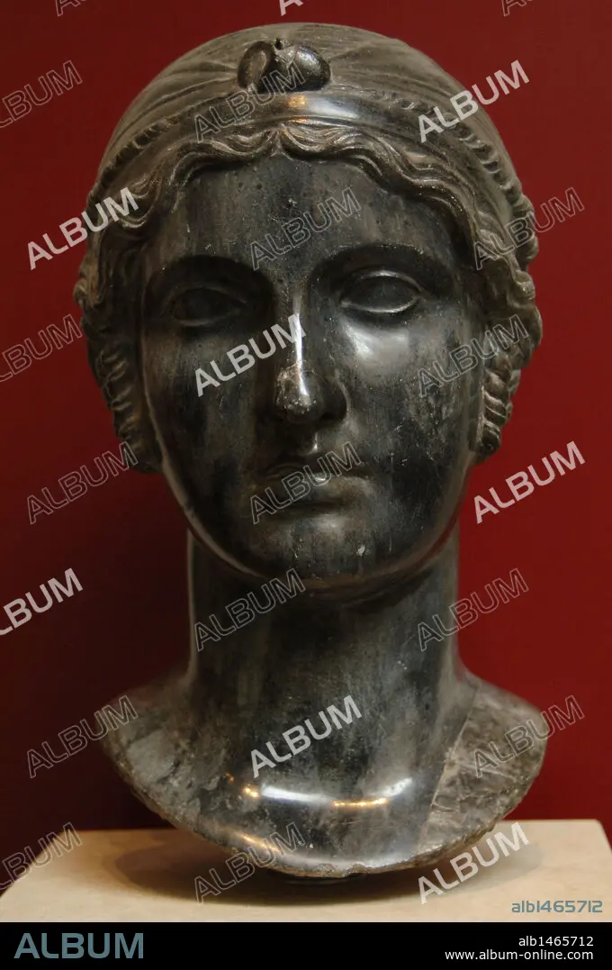 SAFO (h.612-h.570 a.C.). Poetisa griega, una de las más ilustres celebridades en la poesía lírica antigua. BUSTO DE SAFO en basalto negro. Copia de los siglos XVI-XVIII de un original griego. Palacio Massimo. Museo Nacional Romano. Roma. Italia.
