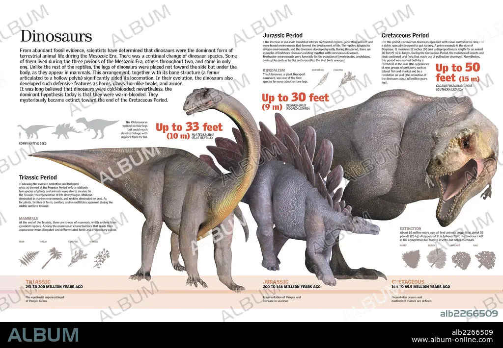 Infografía de las especies de dinosaurios que dominaron la Tierra durante el Triásico, Jurásico y Cretácico.