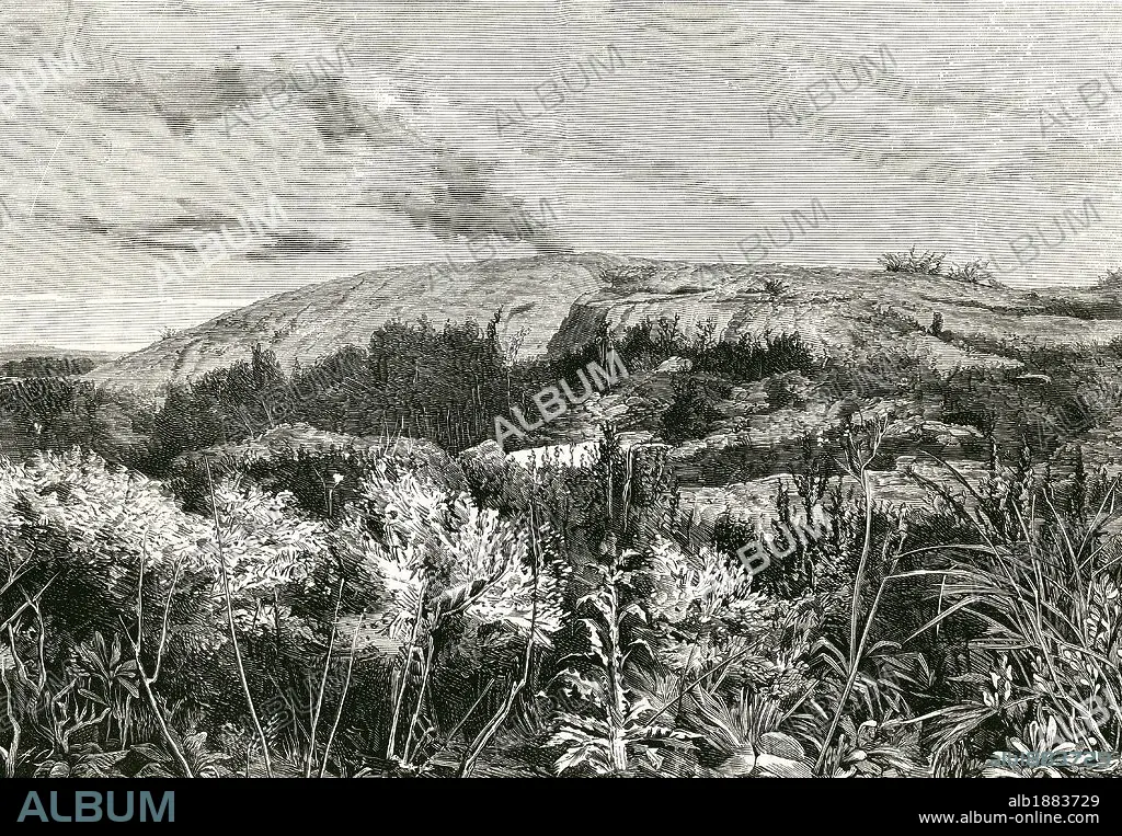 Descripción: HISTORIA DE URUGUAY. SIGLO XIX. PIEDRA ALTA. Lugar en el que se pactó la independencia del país, en 1825. Grabado por Carretero para "La Ilustración Española y Americana" (año 1876) .