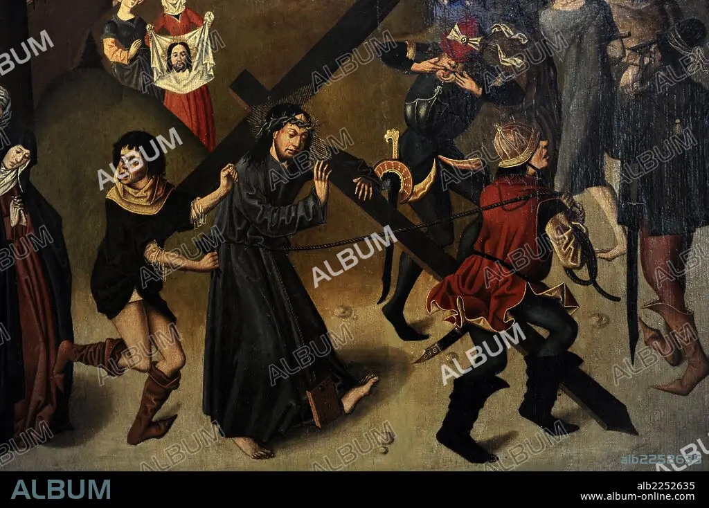 ANÓNIMO. ARTE MEDIEVAL. GOTICO. HOLANDA. ESCENAS DE LA PASION DE CRISTO. Haarlem?, hacia el 1470. Detalle. Cristo transportando la Cruz. Detrás Santa Veróncia con el sudario. Museum Catharijneconvent. Utrecht. Holanda.