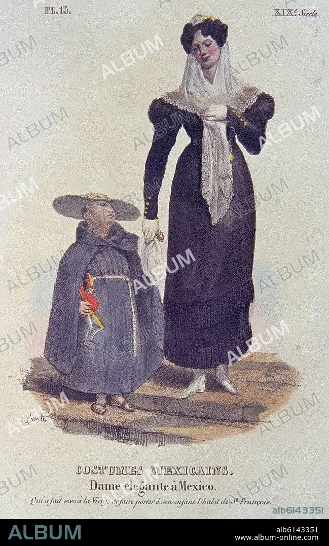 TRAJES CIVILES MILITARES Y RELIGIOSOS DE MEXICO - 1828 - DAMA ELEGANTE DE MEXICO - LITOGRAFIA SIGLO XIX