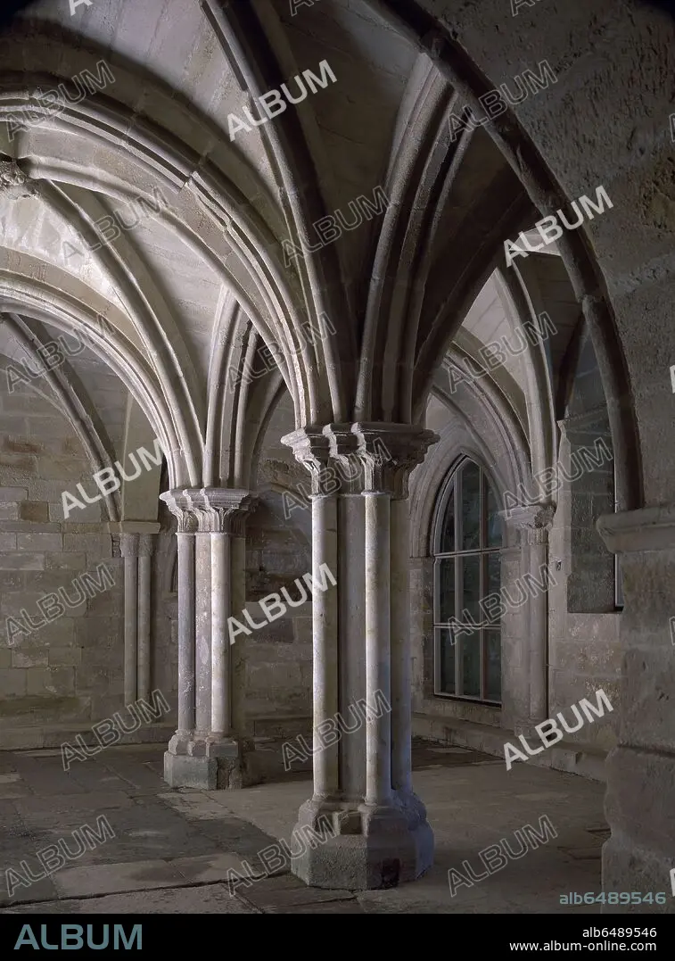 SALA CAPITULAR DEL MONASTERIO DE SANTA MARIA LA REAL DE AGUILAR DE CAMPOO - BOVEDAS DE ARISTA Y PUERTA DEL REFECTORIO - SIGLO XIII