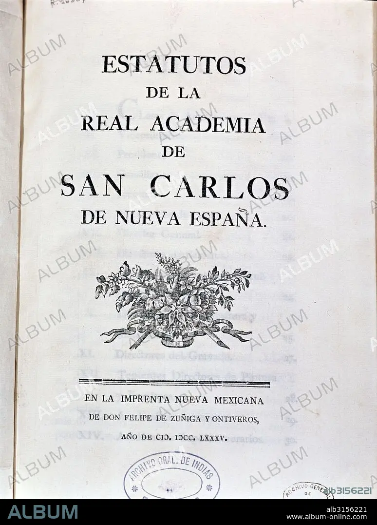 Descripción: Libros Antiguos, siglo XVIII. Portadilla de los Estatutos de la Real Academia (Mexico).