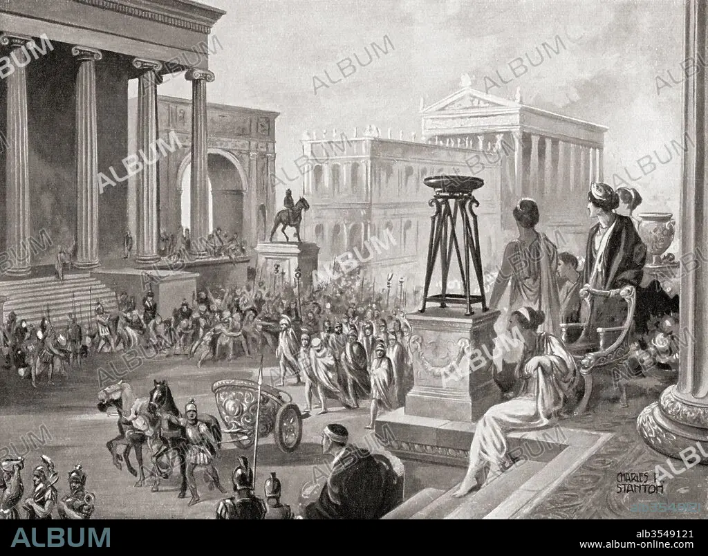 1,000 Achaean nobles transported to Rome as hostages in 167 BC accused of having a secret understanding with Perseus of Macedonia, enemy of the Romans. From Hutchinson's History of the Nations, published 1915.