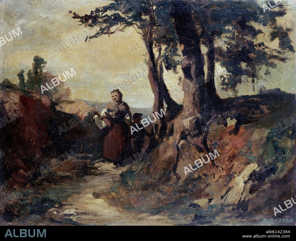 ESCUELA DE GOYA. PAISAJE CON ALDEANA