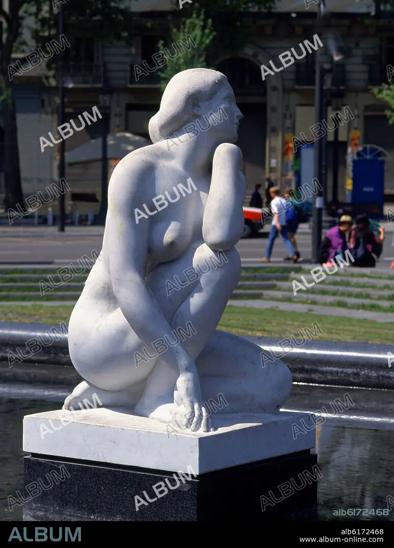 JOSEP CLARA I AYATS (1878-1958). PLAZA DE CATALUNA - LA DIOSA - 1909 - ESCULTURA EN MARMOL