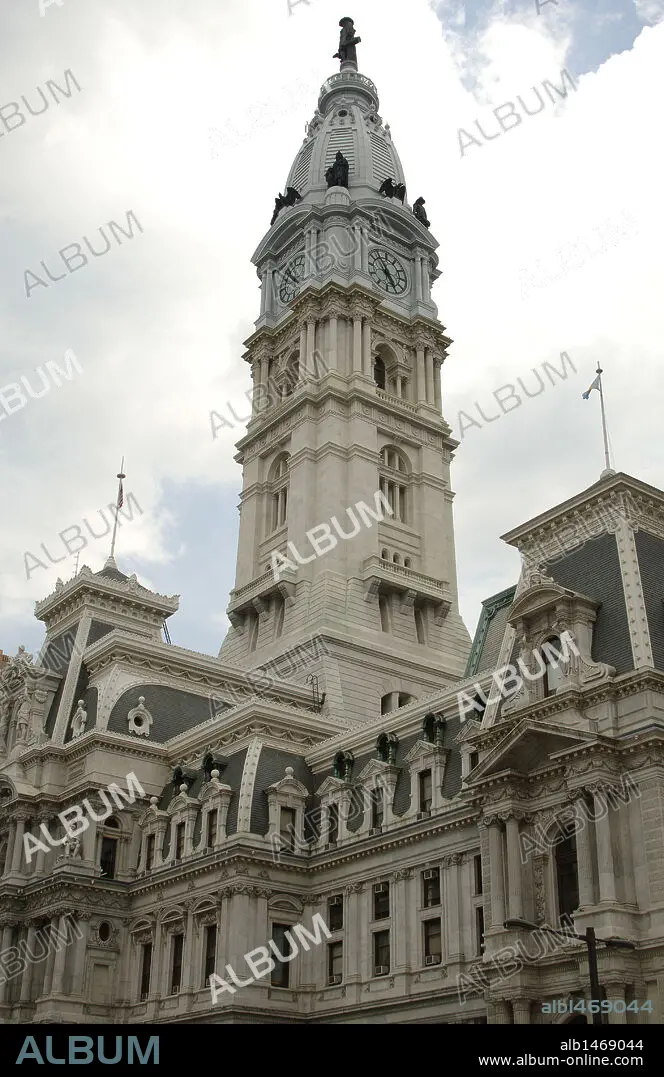AYUNTAMIENTO DE FILADELFIA (PHILADELPHIA). Construído entre 1871 y 1901. La cúpula está coronada por la estatua del fundador de la colonia de Filadelfia, William Penn (1644-1718). Vista del exterior. Estado de Pensilvania. Estados Unidos.