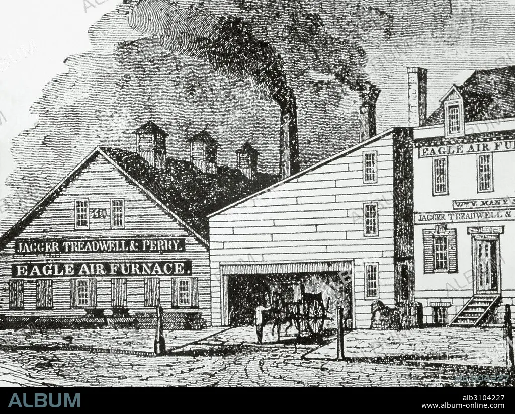 HISTORIA DE LOS ESTADOS UNIDOS. SIGLO XIX. Fábrica "Treadwell and Perry". Albany. Estado de Nueva York. Grabado del siglo XIX.