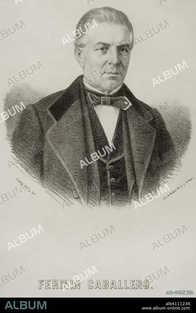 Descripción: Fermín Caballero y Morgáez (1800-1876). Geógrafo, periodista, escritor, político y orador español. Dibujo por Llanta. Litografía. Retrato. Crónica General de España, Historia Ilustrada y Descriptiva de sus Provincias. Castilla-La Nueva, 1869. Biblioteca Histórico Militar de Barcelona. Cataluña, España.