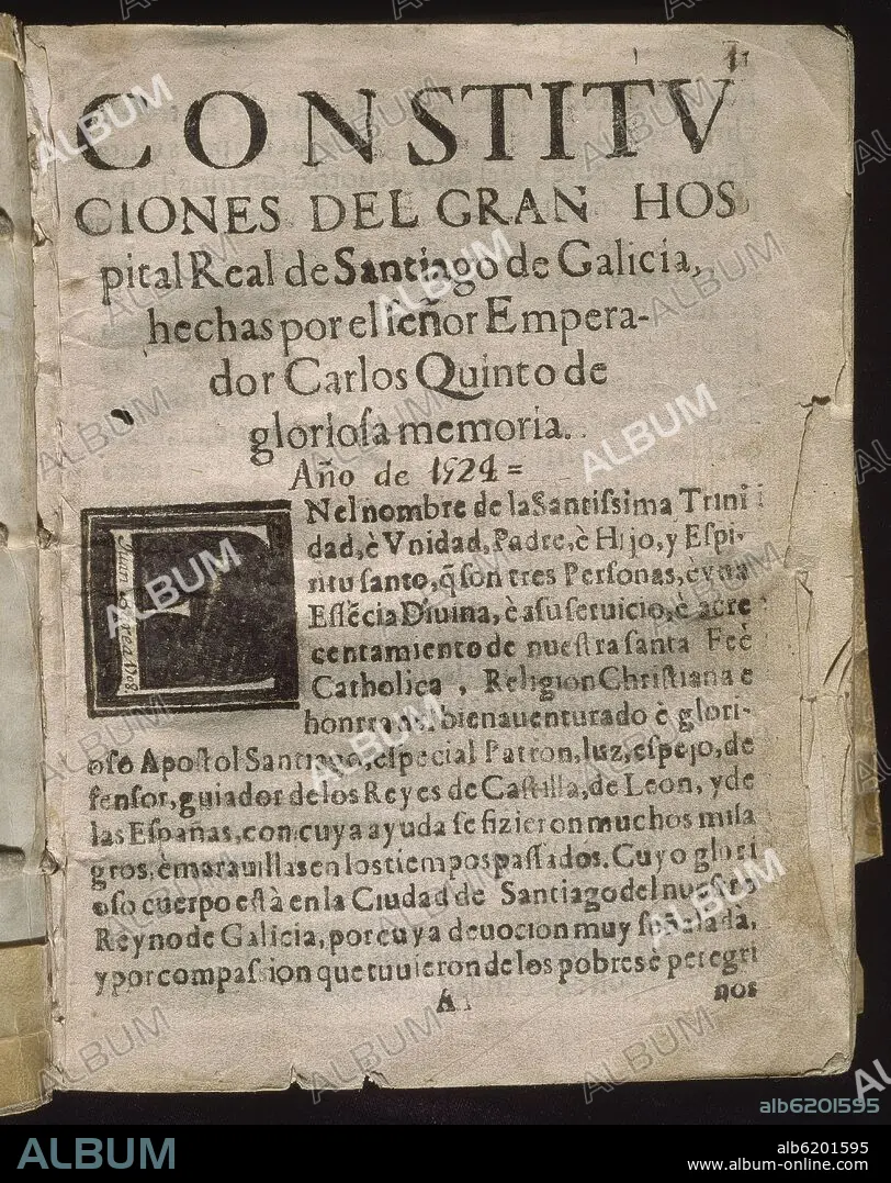 CONSTITUCIONES DEL GRAN HOSPITAL REAL DE SANTIAGO DE GALICIA HECHAS POR CARLOS V - 1524