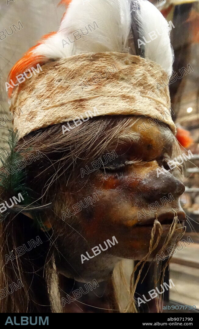 Tsantsas - Shrunken head from the Jivaroan tribes. Shrunken heads are severed and specially prepared human heads that are used for trophy, ritual, or trade purposes. Dated 1890