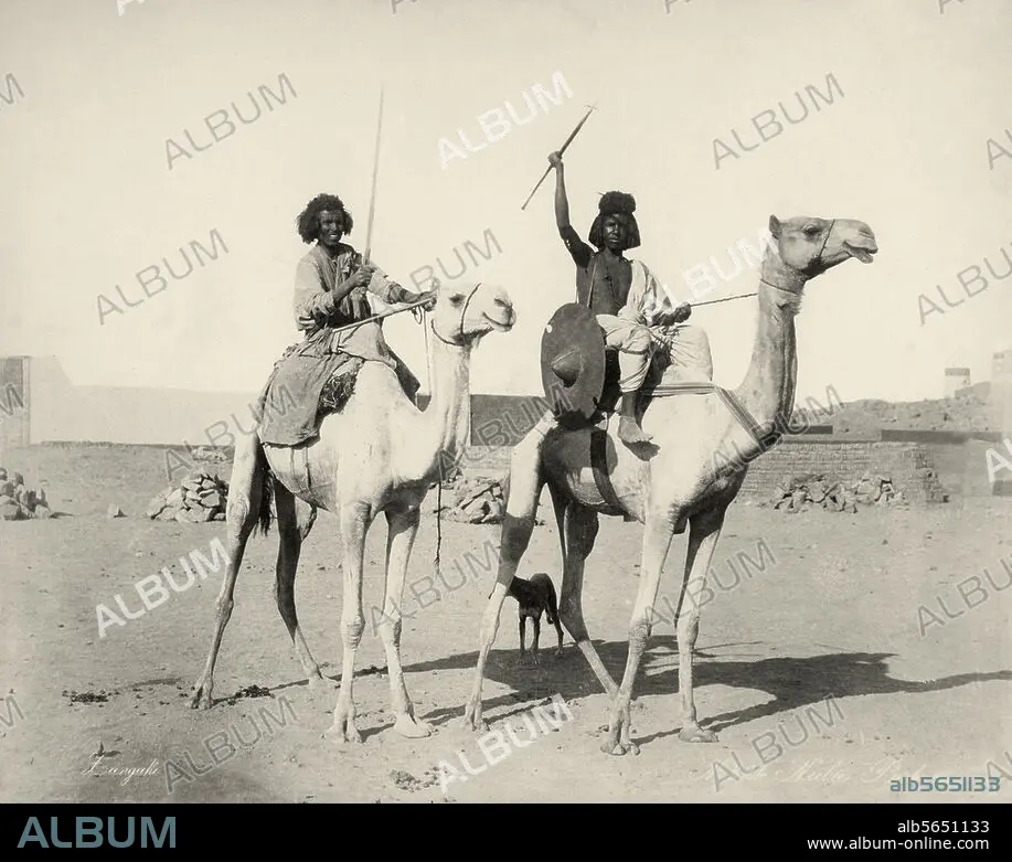 Ethnology:. Africa. Nubian warriors on dromedars. Photo, c. 1890 (Zangaki, Cairo).