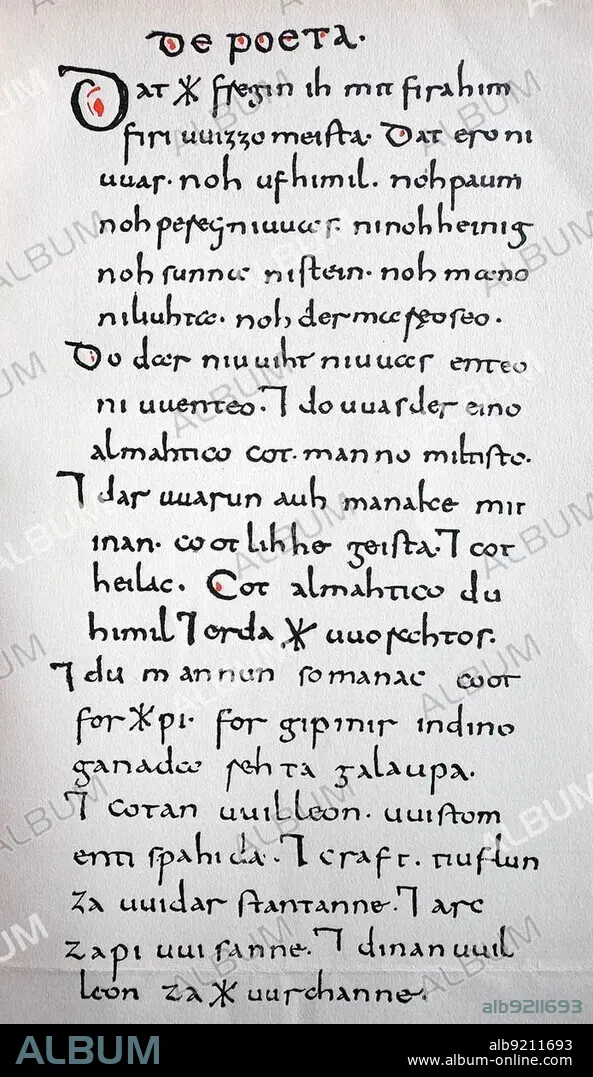 Manuscript of the Wessobrunn Prayer, sometimes called the Wessobrunn Creation Poem, Wessobrunn Prayer, Wessobrunn Creation Poem, probably from around 790, is one of the earliest known poetic works in Old High German, historical image or illustration, published 1890, digitally enhanced, Manuscript of the Wessobrunner Gebet, the Wessobrunn Prayer, sometimes called the Wessobrunn Creation Poem, believed to