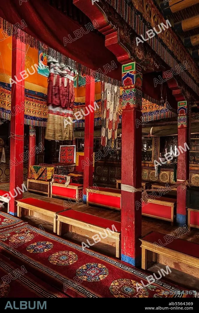 Inside Lamayuru gompa Tibetan Buddhist monastery, Ladakh, India