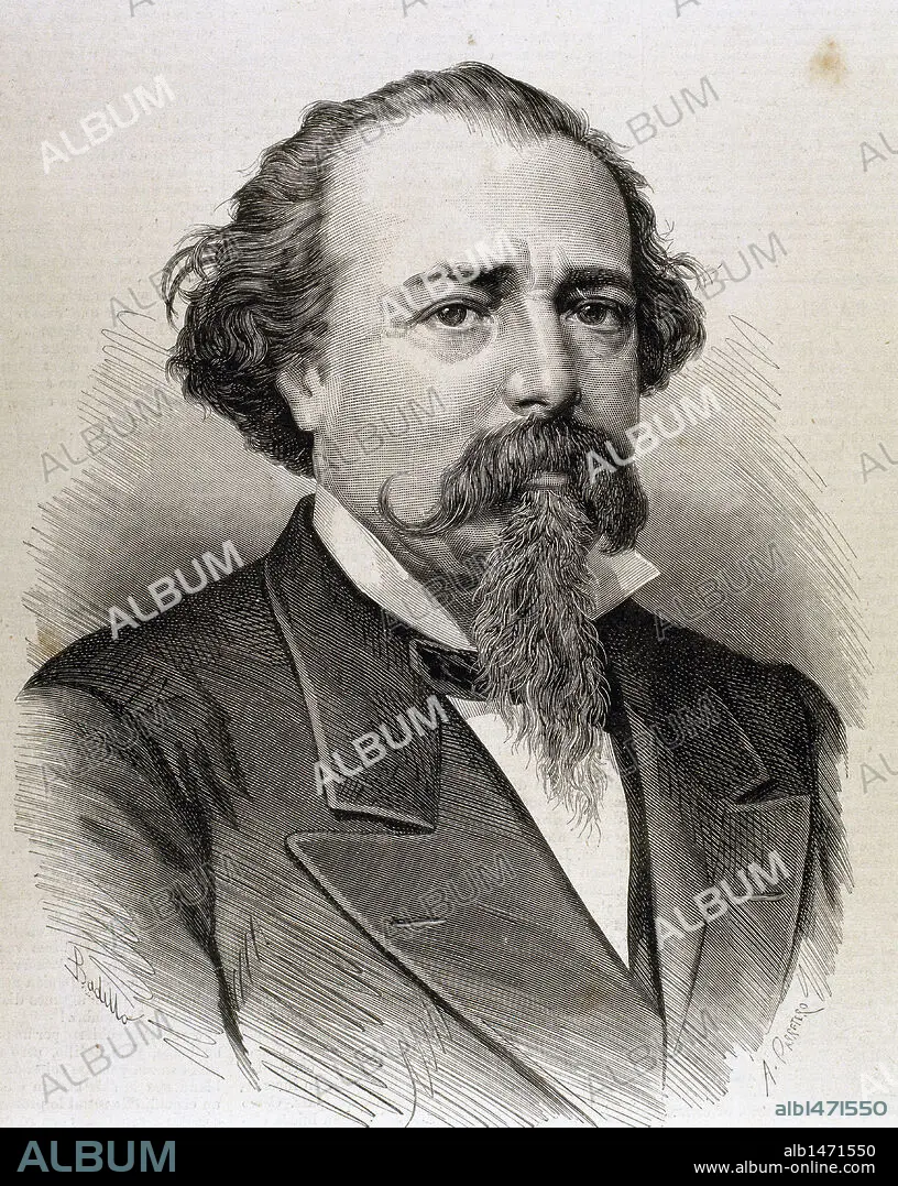 LOPEZ DE AYALA, Adelardo (1828-1879). Poeta, dramaturgo y político español. Redactor del Manifiesto de Cadiz (1868). Grabado de 1879.