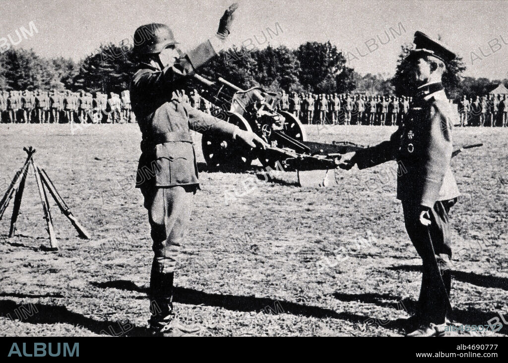 Soldats de la LVF (legion des volontaires francais) : soldats francais engages dans l'armee allemande pour combattre le bolchevisme en Europe. Photographie vers 1944. Credit : IM / KHARBINE-TAPABOR.
