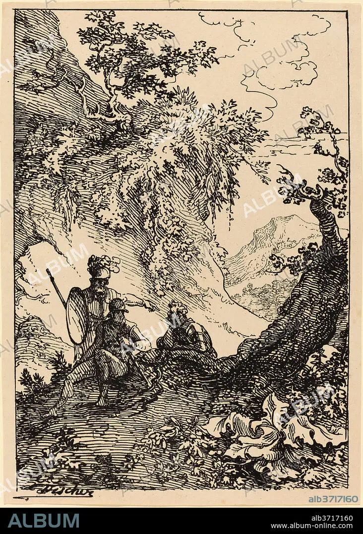 JOSEPH FISCHER. Landscape with Men in Armor, Tree Stump. Dated: 1803. Medium: pen-and-tusche lithograph.