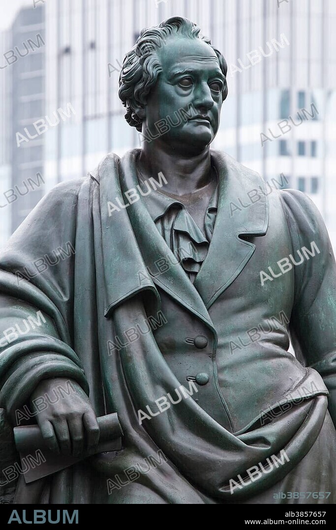 Statue of Johann Wolfgang von Goethe, Goethe Monument on Goetheplatz square, Frankfurt am Main, Hesse, Germany, Europe.