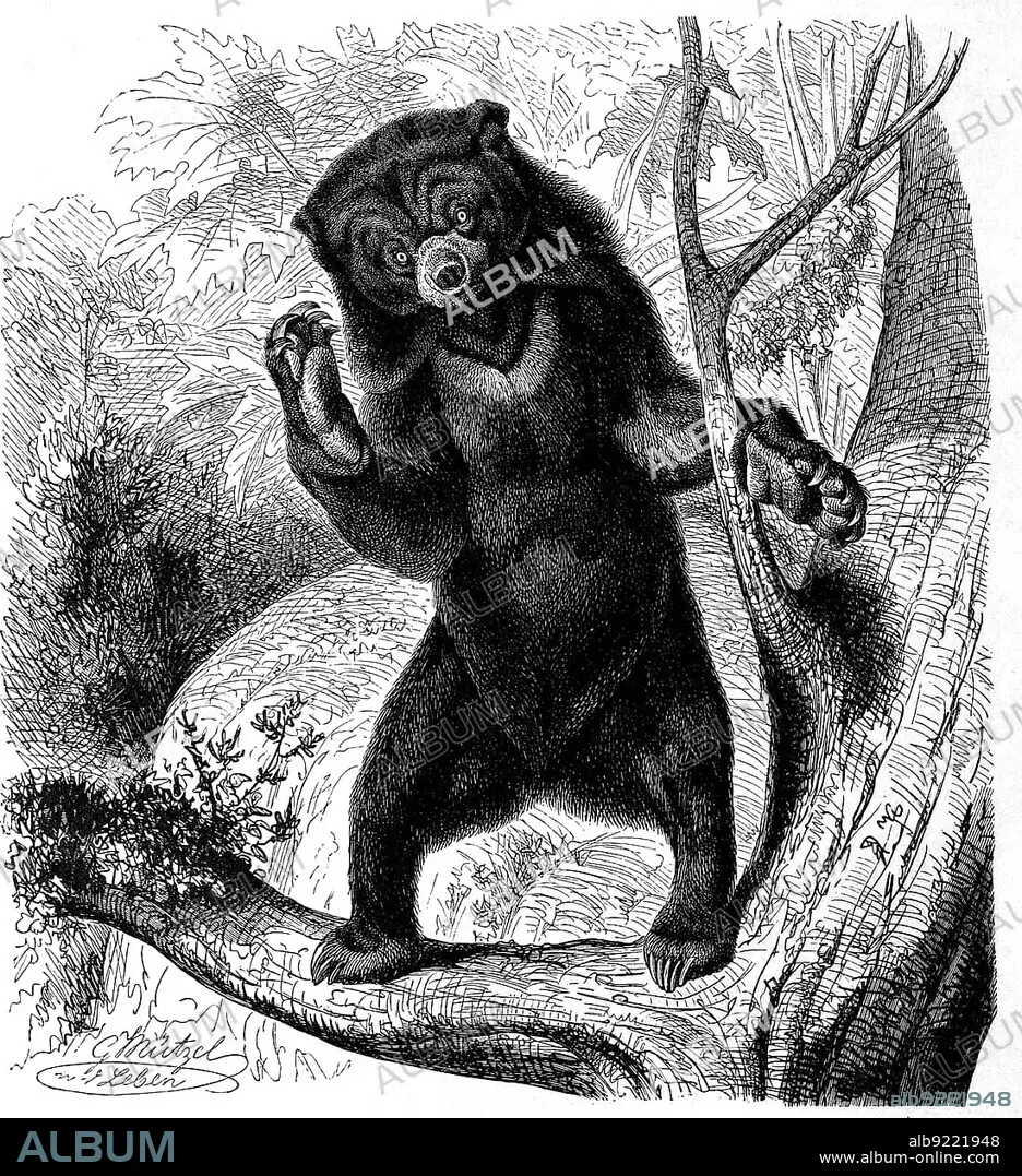 Sun bear (Helarctos malayanus) usually, sometimes, also called sun bear, is a species of carnivore in the bear family, sun bear, a species in the family Ursidae, Historic, digitally restored reproduction of a 19th century original, exact original date not known